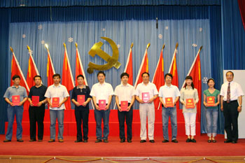 接着进行的是表彰“两先两优”。党委副书记、副所长包翠艳代表所党委宣布了表彰先进党支部、先进党小组、优秀共产党员和优秀党务工作者的决定。党委书记、所长张涛为获得表彰的先进集体代表和优秀个人颁发了奖牌和荣誉证书。