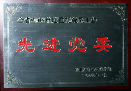 我所党委荣获全省2008年度重视统战工作先进党委称号