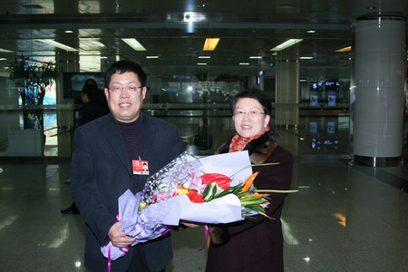 3月12日下午,参加完第十一届全国人民政治协商会议第二次会议的全国政协委员李灿院士返回大连,副所长、党委副书记包翠艳到机场迎接。(张俊)