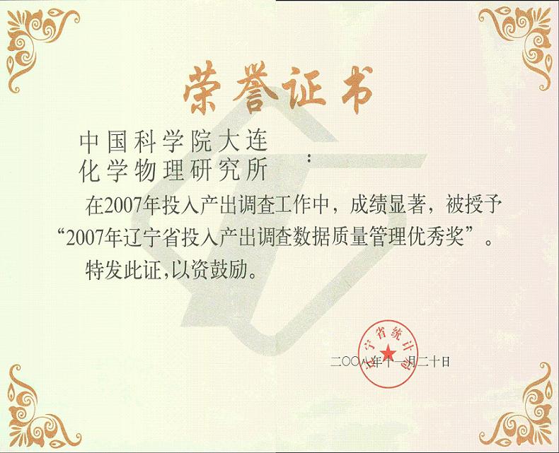 我所荣获“2007年辽宁省投入产出调查先进集体”荣誉称号