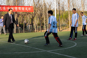 寒风随冬去,暖风迎春来,为迎接60周年所庆,由所研究生会和足球协会联合主办的第五届“创新杯”足球友谊赛于4月27日在山上足球场拉开战幕。所长、党委书记张涛,副所长冯埃生,研究生部主任熊博晖,工会主席刘吉有等领导出席了开幕式。