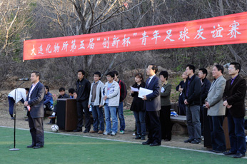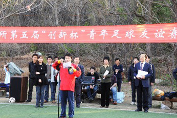 开幕式在激情昂扬的乐曲中开始,冯埃生副所长首先为比赛致词,希望广大队员遵循友谊第一,比赛第二的精神,在比赛中增进友谊,赛出风采!随后张涛所长为本次比赛开球,第五届创新杯足球赛由此拉开战幕!