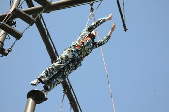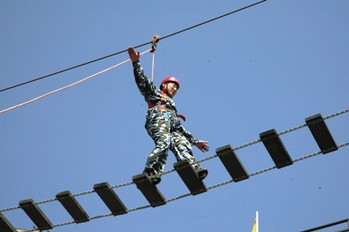 如何将自己融入团队,服从团队指挥,是对团队意识的一个极大的挑战。别具特色的团队文化建设让大家迅速融入整个团队,并认准在团队中应该扮演的角色。空中挑战极限是培训中最惊心动魄的一项,站在8-10米的高空上,面对断桥、软梯和摇晃的铁柱时,需要拥有挑战艰险和困难的勇气。穿越电网让每一位成员懂得互助信赖、互相帮助才能达到目标。最后的翻越逃生墙是三个团队一起合作的项目,在规定时间内全体队员要翻越4米高的光滑铁板,当机立断的决策和服从指挥的精神更显得尤为重要。队员们快速制定了初步的方案,脚踩肩、人拉人、齐心协力、攻坚破难,当最后一个人通过时,很多人都激动不已,拥抱欢呼。