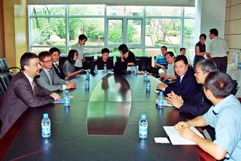 6月11日, 赢创大中华区域发展高级副总裁柯腾汉博士一行应邀访问我所, 参加了在我所生物技术楼学术报告厅举办的赢创工业集团“赢创日”活动。副所长冯埃生、所长助理杨学明研究员、人事处长毛志远、研究生部主任熊博晖等出席了本次活动欢迎仪式。