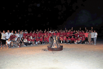 同学们跳起欢快的舞蹈 篝火派对合影