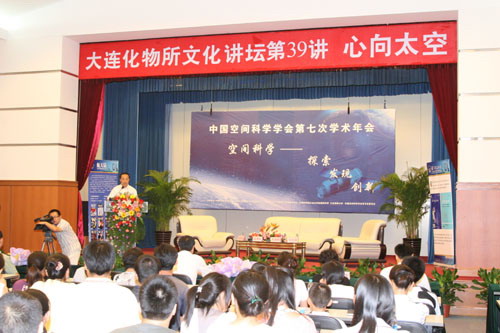 尽管初秋的天气已让人感到些微的凉意,但大连化物所内却到处流淌着火一样的热情,化工楼礼堂座无虚席,甚至过道上都站满了对航天员充满热爱、对神舟奇迹充满敬意的师生。随着航天英雄步入礼堂,全体人员集体起立,用热烈的掌声传达着自己的敬爱之情。