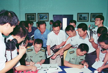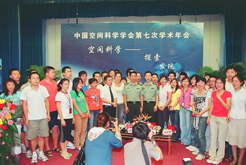 随后,学生代表向航天英雄献上了鲜花,所领导向嘉宾赠送了礼物,以此表达了化物所全体科技人员深深的崇敬之情。此后,对航天员的访谈和互动将本次文化讲坛推向了高潮,有人问到如何面对神舟成功后的荣誉时,航天英雄们这样回答:每一次成功得益于全国人民的大力支持,全体工作人员的团结努力,这个荣誉不属于个人,而是为航天事业奉献自己的热爱的工作人员和全国人民。当有人问到:万一失败而不能返回地球,你们怎么想?回答很简单:这时候生死不在我们的考虑范围之内,即使不能回家,我们也要让五星红旗在太空飘扬!……一问一答中,感动在所有人心中激荡。英雄航天员向现场提问的同学们赠送了宝贵的个人签名照。最后,航天英雄与现场观众一同高唱《歌唱祖国》,将现场气氛推向顶峰。
