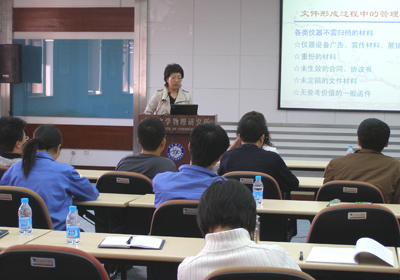 王岩介绍了仪器设备档案工作。包括建档原则、文件形成过程中的管理与控制、归档流程和归档中易存在的问题等。