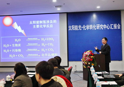 中心主任李灿院士代表太阳能光-化学转化研究中心做了2009年的工作汇报。在简要介绍了我国面临的巨大的能源、环境和国际压力,太阳能行动计划实施的紧迫性,以及中心的目标、研究领域和研究队伍等情况后,李院士从项目、人才和平台三个方面详细的汇报了中心自筹建以来的工作进展,并总结出了太阳能光-化学转化研究中心下一步工作的重点方向。理化所吴骊珠研究员、兰州化物所吕功暄研究员、我所的施晶莹博士和韩洪宪博士作为代表将他们负责的项目向李静海副院长等进行了汇报。随后大家就太阳能光-化学转化研究的国内外研究现状、关键科学技术问题、研究布局等进行了简短而热烈的讨论。