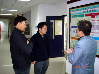 林建平博士主要从事生物大分子动力学模拟的研究,此次来访主要是为了加强与化物所在药物设计、筛选、传递系统等方面的交流与合作。林博士先后参观了生物技术部“生物医用材料工程研究组(1802组)”, “组分中药研究组(1803组)”,“药用资源开发研究组(1806组)”,“生物分离分析新材料与新技术研究组(1809组)”及分子反应动力学国家重点实验室“分子模拟与设计研究组(1106组)”,并作了题为“Computational design of inhibitors for signal transducers and activators of transcription factor 3 (Stat3)”的学术报告,介绍了其通过分子动力学模拟计算设计和筛选药物分子及在DNA纳米管研究方面的新进展,十八室和十一室的相关研究人员和研究生参加了报告会。