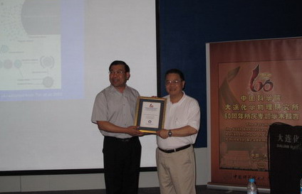Leaf Huang教授长期从事基因治疗、靶向药物传递方面的研究,此次报告主要介绍了Leaf Huang教授课题组近年来建立的一种新型“壳核双层膜脂质体”运载系统,用于siRNA转载及抑制肿瘤细胞生长的研究。Leaf Huang教授用诙谐幽默的语言深入浅出地讲述了这种新型siRNA运载系统的构建过程,精彩的报告博得阵阵掌声。我所相关领域的研究人员到场听取了报告,并与Leaf Huang教授进行了热烈的讨论和深入的交流。马小军研究员代表我所向Leaf Huang教授颁发了中国科学院大连化学物理研究所60周年所庆专题学术报告讲座证书。