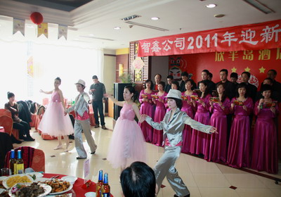 随后,智鑫公司2011年迎新年联欢会在一片欢乐祥和的气氛中拉开了序幕。整场晚会高潮迭起,精彩纷呈,五彩缤纷的节目与紧张刺激的抽奖引得在场观众掌声如雷,一次次将会场的气氛带入高潮。所综合管理处相关人员也前来参加联欢。由大厦物业管理中心带来的《天天好时光》一开场就营造出一片喜庆、欢腾的气氛,博得了大家雷鸣般的掌声;新源动力物业部带来的大合唱《众人划桨开大船》,体现出他们众志成城、团结一致的团队精神;由公司总经理助理宋彦领舞的《啦啦操》展现了餐厅员工们活泼、阳光、积极、向上的精神面貌;肖盛鑫经理带来的两段京剧联唱赢得了观众的一阵欢呼;舞蹈《一杯美酒》舞姿优美,更为联欢会增添了一股异域风情;雷宁总经理也在欢乐的气氛中演唱了一首亲自填词的《智鑫人》,将奋斗在公司各岗位上员工们的热情和敬业精神都融入到歌词中去,唱出了智鑫人一年来的辛勤,更表现出了智鑫人热爱化物所的精神信念,赢得全场的热烈掌声;年轻姑娘们的劲舞《日不落》魅力四射、美不胜收。联欢会在《难忘今宵》的歌声中落下了帷幕。精彩的节目,精美的礼品,可口的午餐,演员们深情的表演以及观众间积极的互动,伴着大家一起度过了一个欢乐的节日。