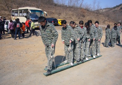 在拓展训练开始之前,教官以一个小故事向大家讲授了拓展训练的理念,即“适应环境,克服恐惧;打破定势,拓展思维;兵贵神速,全力以赴;团结协作,取得胜利”。之后队员分成两组,并推选了团队负责人,进行了队伍的初期组建。经过培训和仔细了解规则后,两组队员分别进入训练场地进行了“有轨电车”和“勇渡鳄鱼潭”等项目,并分享了游戏过程中的经验和想法。