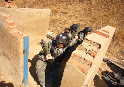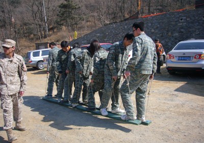 随后,队员们进行了紧张刺激的“山地攻守战”、“平原遭遇战”等野战实地训练。教官讲述了野战规则和激光枪的使用方法后,两队开始商讨“战争策略”,战斗开始后,双方都根据自己特点,扬长避短,分工明确,攻方分多路向守方进攻,守方藏身于有利地形阻击攻方,隐蔽、查找敌人、射击、匍匐前进、迂回包抄、掩护队友、交流情报……在整个激战过程中,每队都充分发挥了队员的积极主动性和团体的整体协调性。最后的“不倒长城”项目让全体队员再一次体验了团队协作的重要性和互帮互助的强大力量,并增进了队友之间的相互信任。