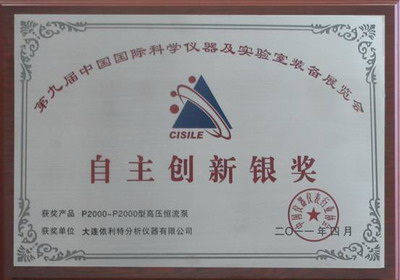 4月25-27日,由中国仪器仪表行业协会举办的第九届中国国际科学仪器实验室装备展览会(CISILE’2011)在北京召开,大连依利特分析仪器有限公司自主研发的新产品——P2000型高压恒流泵被授予自主创新银奖。