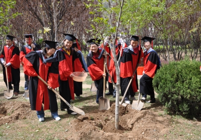 春末夏初的午后,阳光明媚,毕业生们身着庄严的博士学位服,在花团锦簇的美景前合影,大家共同分享着毕业的喜悦。随后,毕业生们拿起铁锹,端起水盆,在“博士林”亲手栽下玉兰树,细心的为之填土、浇水。