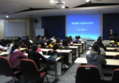 系列讲座包括:《商务表达沟通力训练》、《简历撰写及面试技巧指导》和《初涉职场》。我所聘请创联黄埔金牌讲师——牟淅娅和杜忠明老师为广大学生开展就业辅导。两位老师凭借多年人力资源管理和培训经验,从管理学、组织行为学和心理学角度出发,通过分析求职面试典型案例,指出研究生求职面临的主要问题,并给出具体的实效解决方案。培训内容以传授实战经验为主,针对我所研究生特点,突出强调沟通表达能力训练和“学校人”向“社会人”的心态转换。两位老师幽默、轻松培训风格和严谨的职业精神得到广大学生的一致好评。