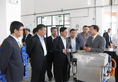 视察中,新源动力股份有限公司明平文总经理、大连凯特利催化工程技术有限公司杜国良总经理、大连融科储能技术发展有限公司孙旻副总经理、天邦膜技术国家工程研究中心有限责任公司尹中升总经理和新兴能源科技有限公司吕志辉总经理分别向吴登昌副省长一行汇报了我所产业化公司的技术特点、研究成果及公司现状与未来发展方向。