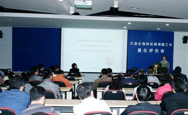 根据中科院“关于全面试行反腐倡廉工作量化评价的通知”精神要求,10月12日下午,中科院沈阳分院副院长、纪检组组长韩恩厚率分院考核组一行三人对我所反腐倡廉工作进行量化考核。首先召开了反腐倡廉工作民主测评会,会议由韩恩厚同志主持。在所的所领导、党委委员、纪委委员、中层干部、党支部书记、科研骨干代表、职代会常设主席团成员、职工代表组长、专兼职纪监审干部等40余人参加了民主测评会。