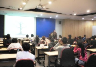 整个讲座采取互动的方式,积极调动了师生参与的热情。讲座一开始,孙教授就把在场的所有人按“岛屿选择”分成六个组,进行了岛屿命名、logo设计、畅谈“白日梦”等一系列探索自我兴趣的活动。随后,“字如其人”的测试又把各个小组进行了细分和重组,进而利用看图—画图—猜图、朋友互评、追忆往事、沙滩拼图、个性挂饰等一系列的心理学小游戏剖析性格,使大家在性格与职业的匹配表中,对号入座。随着讲座的进行,每个人都充分挖掘、深入剖析,自我形象逐渐清晰,目标逐渐明确。最后,孙教授还讲述了获得及提升自我效能的方法,她通过现场案例分析,诠释了目标达成的概念,对同学们走好职业之路提出了策略性的指导意见。