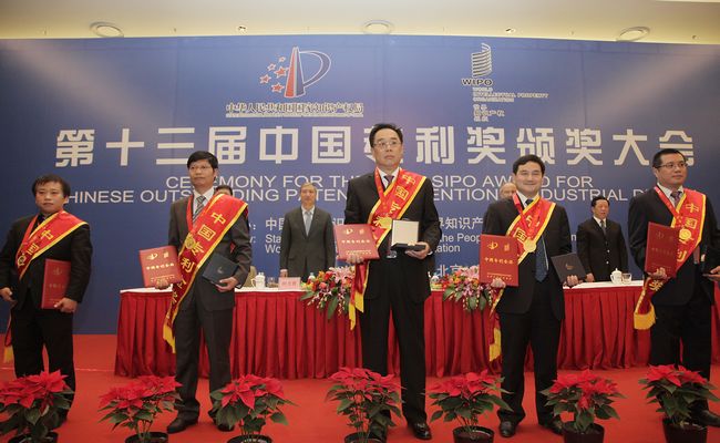 11月8日下午,“第十三届中国专利奖颁奖大会”在北京举行。本届中国专利奖共评选出中国专利金奖项目15项,中国外观设计金奖项目5项,中国专利优秀奖项目177项,中国外观设计优秀奖项目35项。我所由齐越、刘中民、吕志辉、王华、何长青、许磊、张今令、王贤高发明的由甲醇或/和二甲醚生产低碳烯烃的方法专利获第十三届中国专利金奖,是中科院获得的唯一专利金奖。刘中民副所长参加了颁奖大会并代表专利权人和发明人上台领奖。