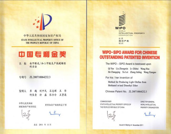 此外,我所的用于甲醛乙醛氨合成吡啶碱的钛基催化剂及其制备方法专利(共同专利权人:南京第一农药集团有限公司)和一种临氢异构化催化剂及其制备方法专利(共同专利权人:中国石油天然气股份有限公司)被国家知识产权局授予中国专利优秀奖。