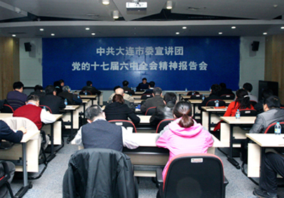 为了进一步深入理解、准确把握党的十七届六中全会审议通过的《中共中央关于深化文化体制改革、推动社会主义文化大发展大繁荣若干重大问题的决定》的精神实质,所党委在11月25日举行了“党的十七届六中全会精神”报告会,邀请大连市委讲师团成员、海军大连舰艇学院王真教授作了“牢铸兴国之魂,深入推进社会主义核心价值体系建设”专题辅导报告。报告会由党委副书记冯埃生主持。党委书记包翠艳、副所长王华;在所的党委委员和纪委委员,各研究室(部)、管理及支撑部门、所参控股公司和离退休职工党支部书记;管理及支撑部门负责人参加了报告会。此次报告会也是党委中心组的学习内容和党支部书记的培训内容。