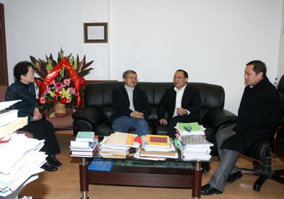 13日下午,所长张涛出差返连后即同在所领导包翠艳、冯埃生一同向杨学明院士送去了所班子最衷心的祝贺。张涛所长表示这份殊荣不仅是杨学明研究员个人的光荣,也是我所的崇高荣誉,是对杨学明研究员多年来在分子反应动力学研究领域取得杰出成就的肯定和褒扬。在热烈、喜悦的气氛中,杨学明院士激动地说:“能够当选院士要感谢大连化物所提供的良好科研条件和人文氛围,要感谢各级领导及各方面的大力支持。回到化物所,是我一生中最重要的决定。”