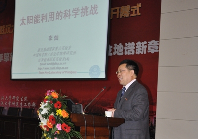 在由武汉大学化学与分子科学学院举办的“大师论坛”上,李灿院士、周永贵研究员和孙立贤研究员分别做了题为“太阳能利用的科学挑战”、“芳香杂环不对称氢化”和“新能源材料热化学与传感器研究”的学术报告,三场报告吸引了近400人参加。