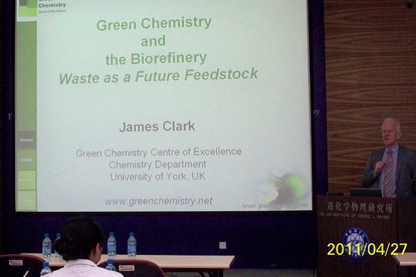 4月27日下午,英国约克大学James H. Clark教授一行受邀来我所访问交流并作了题为《Green Chemistry and the Biorefinery—— Waste as a Future Feedstock》的学术报告。选择氧化课题组(208组)组长高爽研究员主持了报告会,相关领域的科研人员和研究生40余人参加了报告会。