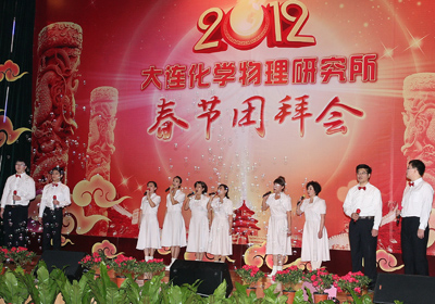 团拜会在激昂的《水鼓舞》中拉开序幕,欢快的旋律抒发出化物所人共贺新春的美好心声。张涛所长满怀激情地致以新春献辞,简要回顾了2011年取得的突出成绩,向全所职工、研究生和离退休老同志对研究所的发展所做的贡献表示衷心的感谢,期望全所同志,在新的一年里再接再厉,为共创化物所更加美好的明天而努力奋斗!