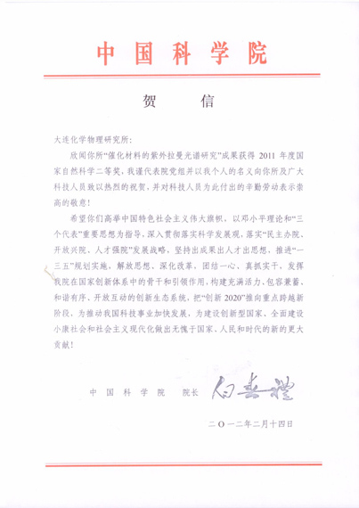 由李灿院士率领的研究团队完成的“催化材料的紫外拉曼光谱研究”成果喜获2011年度国家自然科学二等奖,李灿院士参加奖励大会并作为获奖代表上台领奖。该成果利用紫外共振拉曼光谱首次获得钛硅分子筛中骨架钛物种存在的直接证据,建立了国际公认的鉴定微孔和中孔分子筛骨架中过渡金属杂原子的拉曼光谱研究方法。在国际上首次对分子筛的合成过程实现了原位紫外共振拉曼光谱研究,发现了催化材料合成的重要转化过程和活性中心中间物种,提出了催化材料合成的机理。发现许多氧化物的表面与体相结构不同。尤其在重要的光催化剂氧化钛体系中,基于紫外拉曼光谱的研究,提出“表面异相结增强光催化活性”的新概念。