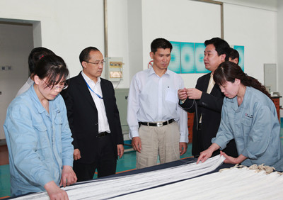 詹院长首先视察了公司的生产基地,听取了天邦公司总经理尹中升对自主设计的八喷头超滤生产线和德国进口的八喷头气膜纺丝线生产运行情况的介绍,并与尹中升总经理及研发人员深入交流,详细了解膜关键技术、生产现况及未来发展情况。