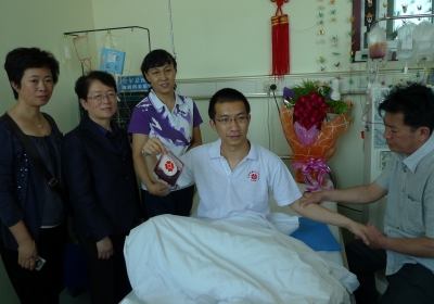 我所503组博士研究生肇极同学于2006年8月25日在义务献血活动中报名加入中国造血干细胞捐献者资料库,正式成为一名造血细胞的注册捐献者,志愿无偿捐献造血干细胞以救治需要进行造血干细胞移植的白血病患者。2012年2月23日,经中国造血干细胞捐献者资料库检测,肇极同学的HLA初配型与一名白血病患者相合,4月1日,高分化验与患者相合,5月7日体检正常,5月18日入住空军总医院,5月23日,接受并成功完成外周血造血干细胞的采集手术,目前身体状况良好,正处于休养恢复阶段。