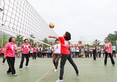 6月8日中午,经历过前夜雨后的排球场,显得格外干净利落,空气一尘不染,红绿分明的山上排球场场边四周被围得水泄不通,厚厚的人墙更增加了赛场的浓厚气氛。聚焦场上,原来2012年所排球赛冠亚军的巅峰对决正在上演。