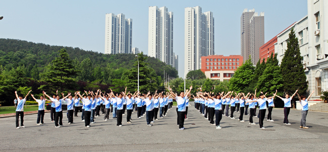 当天一早,在面朝蔚蓝大海,背依绿意葱葱的富国山的化工楼前广场,来自我所7个研究室、10个研究部、管理及支撑各部门的代表近150人汇集一起,组成了排列整齐的方阵,笔直的列队,横看像岭,侧看成峰。此刻,他们正沐浴着初夏迷人的和煦阳光,呼吸着香槐园里飘来的清新空气,脚踏着第九套广播体操的明快韵律,伸展、扩胸、踢腿、弯腰、体转、跳跃……和着他们身上那蓝白色调的运动衣,整个队伍显得格外的整齐划一,精神饱满。广播体操的集中展示活动使参加人员既锻炼了体魄,活跃了科研生活,同时展示了我所职工、研究生朝气蓬勃、积极向上的良好精神风貌和浓厚的文化气息。