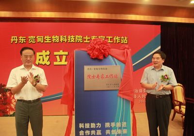 8月20日,丹东?宽甸生物科技院士专家工作站协议签署及揭牌仪式在丹东举行。丹东市市长石光、中科院沈阳分院院长包信和、我所张玉奎院士出席成立大会并为工作站揭牌。
