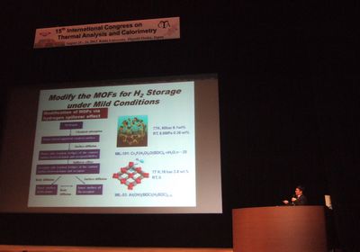 我所孙立贤研究员应邀参加了本届会议,并做了题为“新型储氢和相变储能材料及其热化学研究(New Hydrogen Storage/Phase Change Materials and Their Thermochemistry Studies)”的大会口头报告,介绍了其研究组在储氢材料热力学、热分析最新研究成果,并以墙报形式汇报了组内相关工作进展(Low-temperature heat capacities and thermodynamic properties of a 3D Cu(II) supramolecular complex等15份墙报)。同时,他也汇报了其本人承担的IUPAC国际合作项目的研究进展。