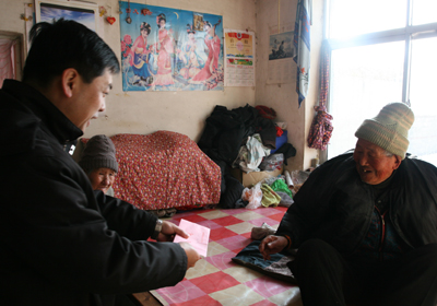 王所长一行带去了我所全体职工、研究生的节日问候,在村民家里,王所长亲切地握着村民的手,问候他们的身体、生活、过年用品等情况,并告诉大家要拥有一颗热爱生活的心,要相信党和政府会给他们提供帮助,要幸福地生活。