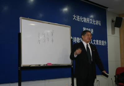程教授说诗词歌赋在中国不仅仅是一种文学形式,更是一种文化风度,一种人生境界。“不学诗何以言”,他希望现场每个人学会从中国传统的优秀诗歌中汲取丰富的精神营养,做一个有远大志向、有大才华、大胸襟、大气派的人,为国家、为民族、为人民做大事的人。