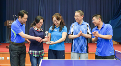 在赛后的颁奖仪式上,党委副书记、副所长王华为冠军队颁发了奖杯和奖品,工会文体委员会主任田志坚、乒乓球协会秘书长曲炜分别为亚、季军颁奖。(文/曲炜 图/徐大力)