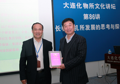 报告后,宣明所长与听众进行了热烈的交流互动。最后,张涛所长代表我所为宣明所长颁发了“大连化物所文化讲坛贡献奖”奖牌。(文/田丽 图/刘万生)