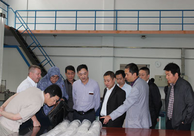 来宾首先听取了天邦公司的情况介绍,随后参观了公司的产业化基地,包括德国进口多喷头高速纺丝线和装配车间等,天邦公司总经理徐徜徉详细介绍了公司的生产及装备情况,双方进行了广泛的技术交流并就可能合作的领域和项目进行了研讨。(文/图 邵海玲)