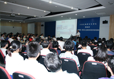 祝京旭首先用生动的语言、优美的图画向大家介绍了加拿大以及西安大略大学的总体概况。然后,他又详细地阐述了中西方文化和中西方教育理念各自的特点和两者之间存在的差异。接着,祝京旭结合自身科研工作和家庭教育的经验,就如何培养研究生的责任感、创造力和想象力等问题进行了分析和阐述。整场报告会座无虚席、气氛热烈,祝京旭教授用深入浅出并略带幽默的语言为大家奉献了一场精彩的讲座,引起了在场听众的共鸣,现场不时爆发出热烈的掌声。
