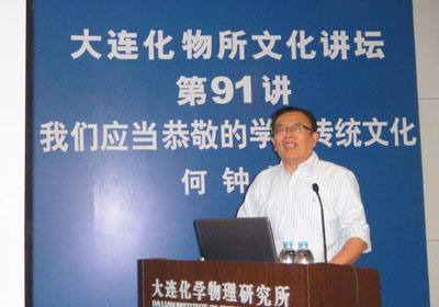 9月24日,大连工业大学何钟林教授作客我所文化讲坛第91讲,在生物楼学术报告厅做了题为“我们应当恭敬的学习传统文化”的主题报告。