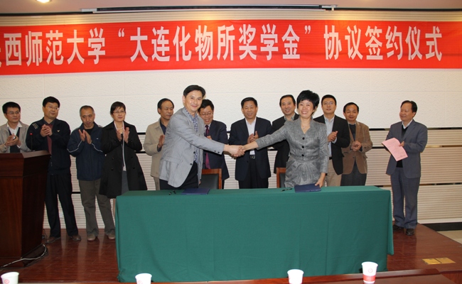 王涛首先致辞,对我所在陕师大设立“大连化物所奖学金”表示感谢,希望双方今后在人才培养、学术交流和学科建设等领域有更加广泛的合作。李灿在致辞中向陕师大在保送研究生工作中一直以来对我所的支持表示感谢,鼓励在学的同学们勤奋学习、刻苦钻研、勇于献身我国科研事业,以优异的成绩到大连化物所继续深造。