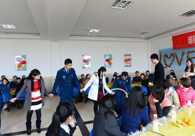 下午1时许,我所张红燕等人表演的爵士舞《so cool》为此次单身派对拉开序幕,曼妙的舞姿得到台下观众的一声声赞叹与一阵阵欢呼。在动人旋律中,大家开始放下羞涩,大方地进行自我介绍和相互交谈。活动策划了丰富多彩的游戏以帮助各位男生女生共同合作构建默契。第一个游戏“爱情传传传”互动场面相当热闹,参加游戏的同学齐心协力,充分互动,乐在其中。接着趁热打铁,进行了能增进彼此了解的“爱情摩天轮”环节,此环节要求男生换位置,与不同桌的女生交流。之后的“爱情竞拍”游戏中战士们一展军人风采,争分夺秒为心仪的女生争取奖品。最后“爱情大决战”环节,战士们在女生的指引下穿越障碍,向心仪的姑娘送上了充满爱意的巧克力。