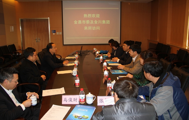 张涛首先对客人的到访表示热烈欢迎,他表示,金昌市拥有丰富的矿产资源,是我国最大的镍钴生产基地和铂族金属提炼中心,我所在相关领域的研发中需大量使用贵金属,因此与金昌市企业有巨大的合作潜力。金川集团作为金昌市最具代表性的企业,已和我所签署了全面战略合作协议,目前双方已开展了具体而卓有成效的合作。未来我所将充分利用科学、技术、信息和人才等方面的优势,积极为金昌市和金川集团提供各种科技信息及可转化为现实生产力的科技成果,改造传统产业,发展高新技术产业,服务金昌市区域经济建设。张令平在随后的讲话中表示,大连化物所在相关行业享有广泛的美誉,有为数众多的科技成果在地方企业得到应用,创造了巨大的社会效益和经济效益。金昌市未来将在煤化工、精细化工以及新能源领域进行重点规划,希望大连化物所能与金昌市以及金川集团建立优势互补、互惠共赢的科技合作关系,将大连化物所科技优势转化为现实生产力,加快金昌市经济结构调整和产业转型升级。