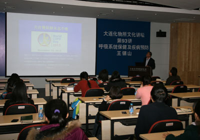 11月20日,大连医科大学附属第二医院呼吸内科主任王镇山作客我所文化讲坛第93讲,在生物楼学术报告厅做了题为“呼吸系统保健及疾病预防”的主题报告。