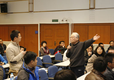 报告结束后,我所职工和研究生就相关感兴趣的问题与何祚庥进行了热烈的讨论和交流。作为86岁高龄的老者,何祚庥走到听众中间,为大家详细解答各个问题,让人为之动容。王华代表我所为何祚庥颁发“大连化物所文化讲坛贡献奖”奖牌。(文/孙洋 图/高杨)